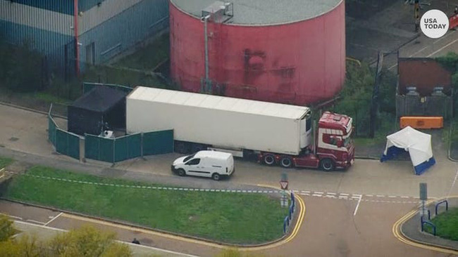 Vào lúc 1h40 sáng ngày 23/10 theo giờ địa phương tại thị trấn Grays, hạt Essex, Anh, 39 thi thể người Việt trong đó có 31 người đàn ông và 8 người phụ nữ đã được lực lượng cảnh sát tìm thấy trong một chiếc xe tải container.