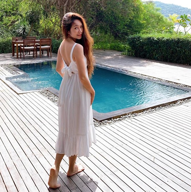Hiếm hoi lắm khán giả mới thấy Minh Hà khoe dáng với bikini khi đi du lịch cùng chồng.