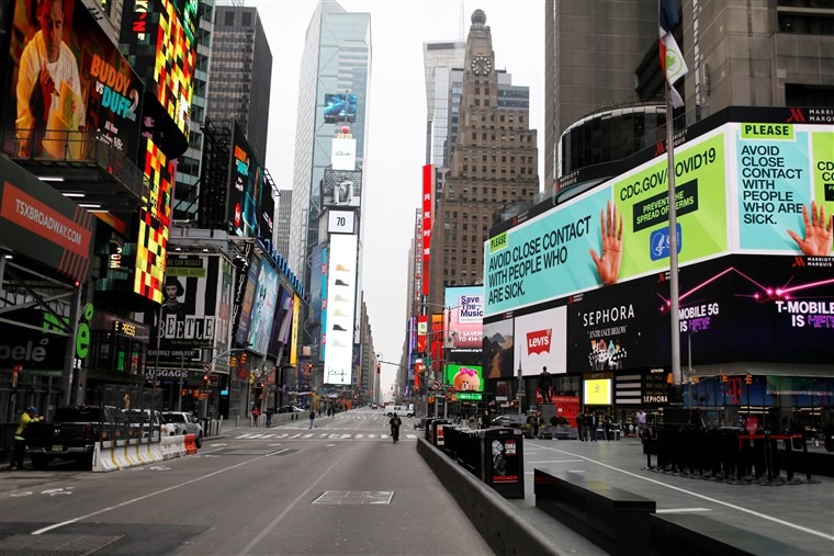 Quảng trường Thời đại và New York chưa bị cách ly để phòng chống dịch COVID-19. Ảnh: NBC News