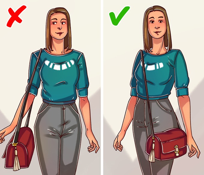 Cách đeo này khiến chiếc túi nằm sát cơ thể, trọng lượng của nó sẽ ổn định và bớt gây áp lực lên da thịt so với việc đeo một bên.