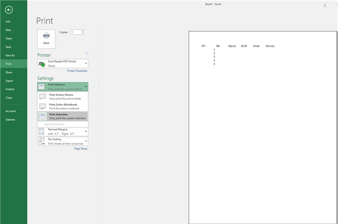 Khi cần in một vùng dữ liệu nhỏ, hãy bôi đen vùng dữ liệu đó, và chọn Print Selection khi in