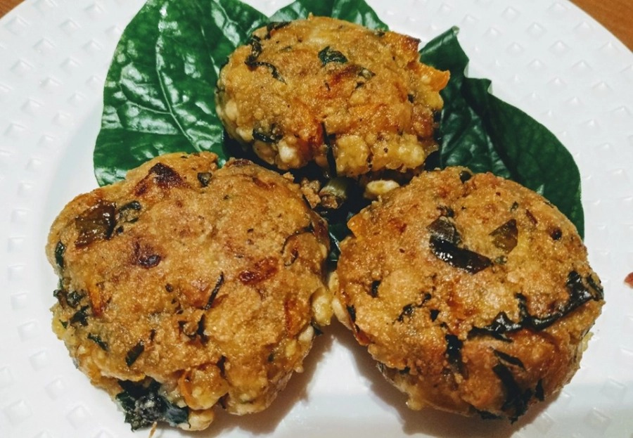 - Làm nóng chảo, cho dầu và bỏ viên chả đậu vào rán vàng hai mặt.