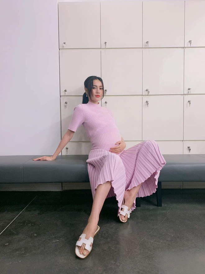 Trong một khoảnh khắc khác, cô còn tạo dáng thần thái và 1 tay ôm bụng nhô cao - Ảnh: FB