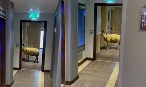 Khách sạn Premier Inn ở Holyhead (xứ Wales) đã đăng một đoạn video lên Facebook cho thấy con cừu đứng ngay bên ngoài cửa thang máy trong một hành lang.