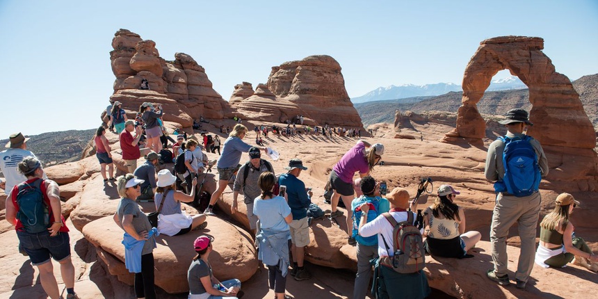 "Nơi nào cũng có hàng người xếp hàng dài dằng dặc", Libby Preslock, một du khách, nhận xét với Wall Street Journal về khung cảnh đông đúc ở Vườn quốc gia Arches (bang Utah).