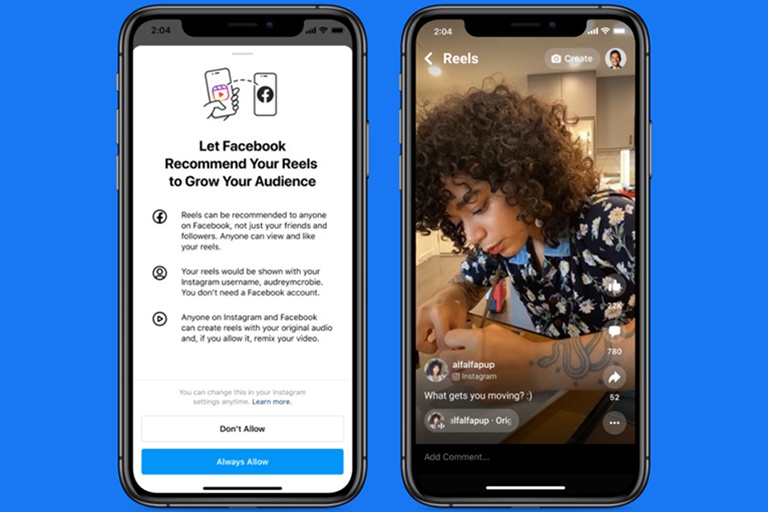 Trên Facebook, người dùng có thể xem các video ngắn không chỉ trên bảng tin của họ mà còn trong Facebook Group. Đối với Reels trên Instagram, video của họ sẽ xuất hiện trong phần Reels cùng với các Reels khác được tạo nguyên bản trên ứng dụng.