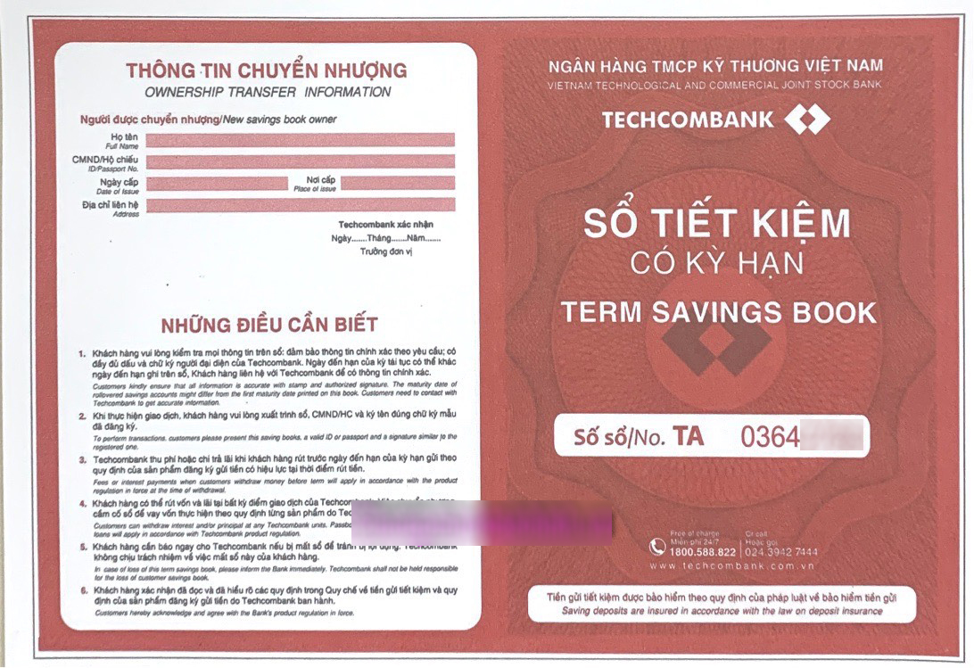 Cuốn sổ tiết kiệm mẹ Hồ Văn Cường cầm thực ra là mẫu mới nhất Techcombank phát hành