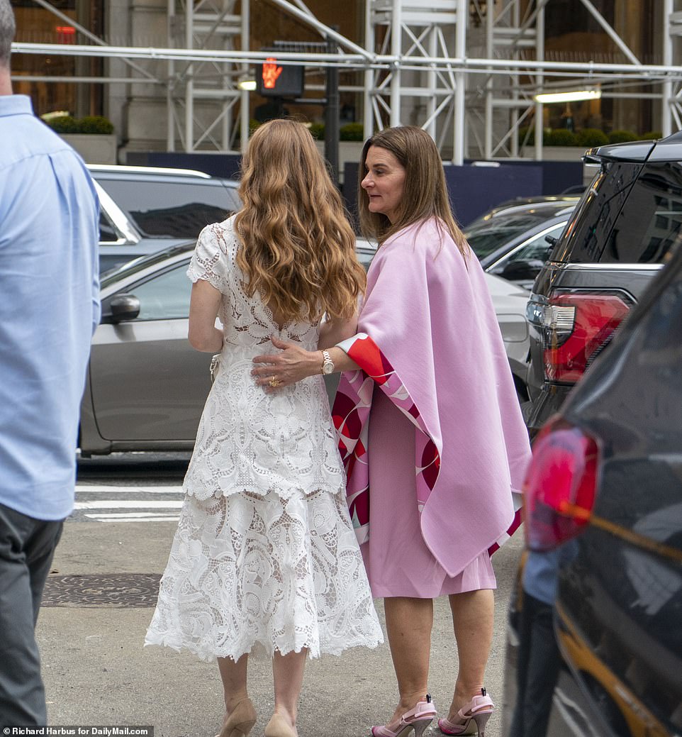 Cả hai thu hút sự chú ý lớn với cách ăn vận sang trọng, nổi bật và vô cùng thanh lịch. Vợ cũ Bill Gates mặc một chiếc váy hồng dịu dàng đi cùng đôi giày cao gót và áo choàng cùng màu. Hiếm khi thấy bà Melinda ăn diện cầu kỳ như vậy.