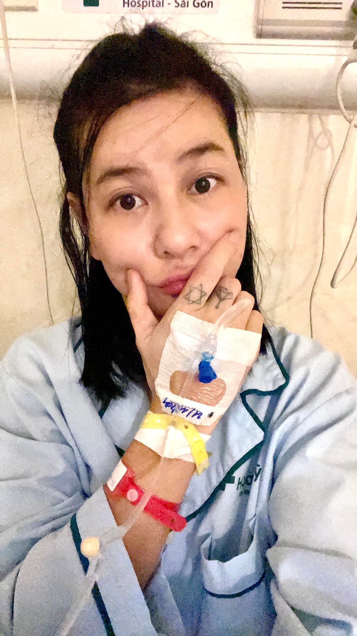 Đó, như vậy đó, nên không ai chăm Cát. Cơm nước các thứ có y tá đem lên tận nơi đúng giờ ạ. Nên mọi người yên tâm nhé. Cát ổn nhé mọi người.