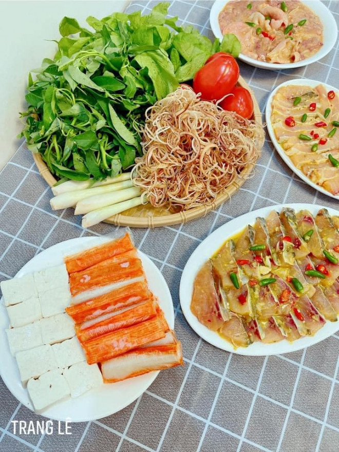 Nguyên liệu cho nồi lẩu cá chép. Ảnh: Trang Lê.