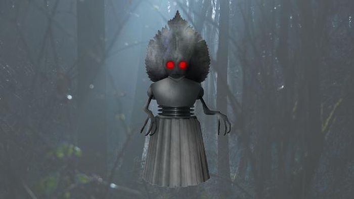 Thực tế, hình ảnh được mô tả lại giống như các lỗ chiếu ra nhiều chùm tia nhiều ánh sáng gồm màu xanh lục, màu cam... Phần thân của "quái vật" có diện mạo khá giống con người khi mặc bộ đồ đen giống như một bộ váy. Hai cánh tay của nó khá ngắn, thô và có những ngón tay dài như những móng vuốt.