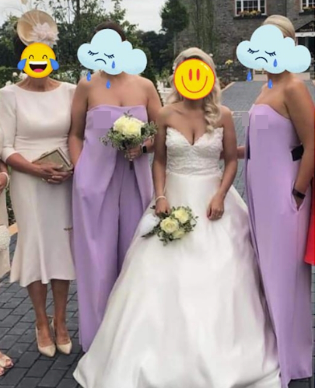 Cô dâu trong bức ảnh này đã lên tiếng nhờ cư dân mạng photoshop chỉnh sửa váy của hai người họ hàng để cho chúng trông kín đáo hơn.