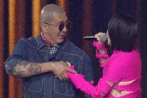 Trên sân khấu giải Kim Khúc, Từ Hy Đệ có hành động vỗ ngực anh rể DJ Koo. Khán giả đánh giá phản cảm.