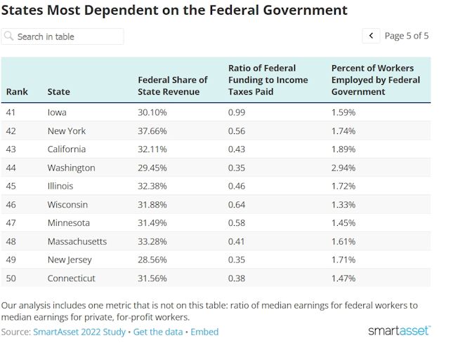 Red States Lead With Federal Dependence