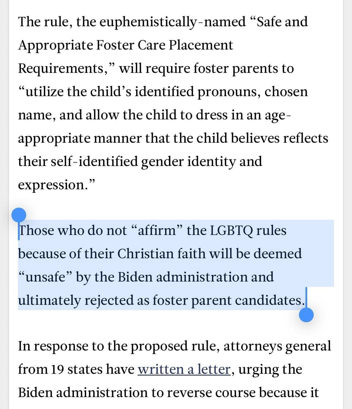 -Chính sách mới của chính phủ Biden. Không cho những gia đình thuần công giáo nhận con nuôi nếu những người này không công nhận người 2-3 hệ. Vì tầm nhìn cực hửu của họ có thể anh hưởng tâm thần đến lớp trẻ.