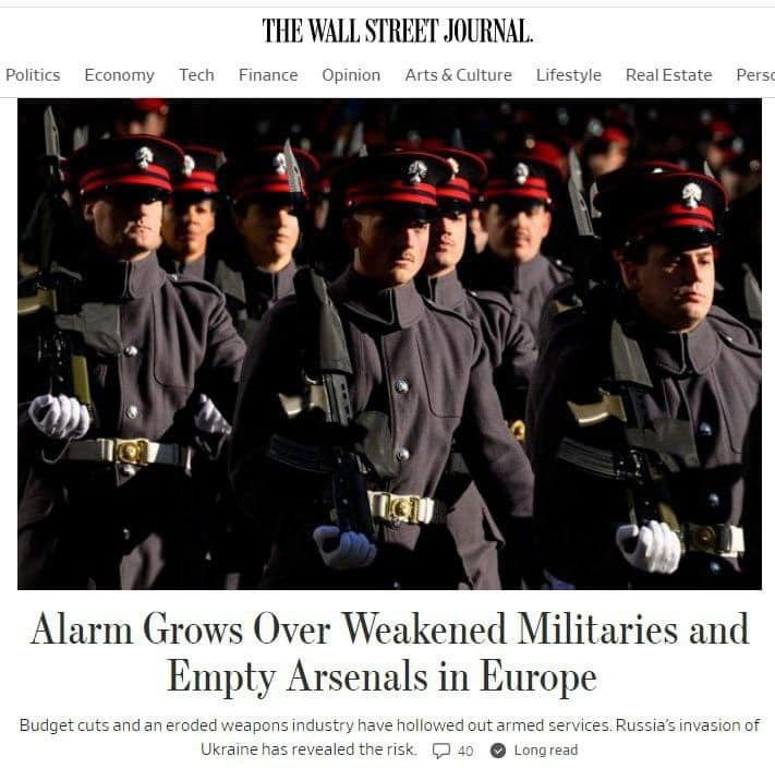 Chuyện kêu gọi Nato giúp đở cũng nên quên vì Nato không còn vũ khí. Tin từ Wall street journal