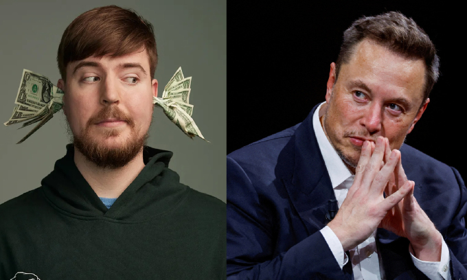YouTuber Mr. Beast (trái) và Elon Musk. Ảnh: Rollingstone/Reuters