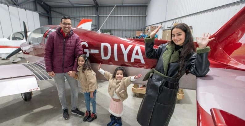 Gia đình Ashok Aliseril Thamarakshan bên chiếc máy bay. Ảnh: The Sun