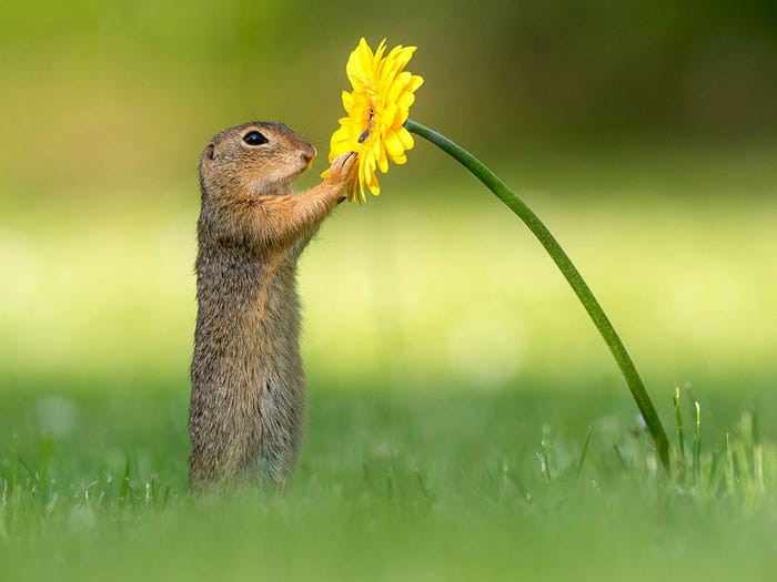 Khoảnh khắc con sóc tóm bông hoa lại gần rồi ngửi. Nguồnick van Duijn.