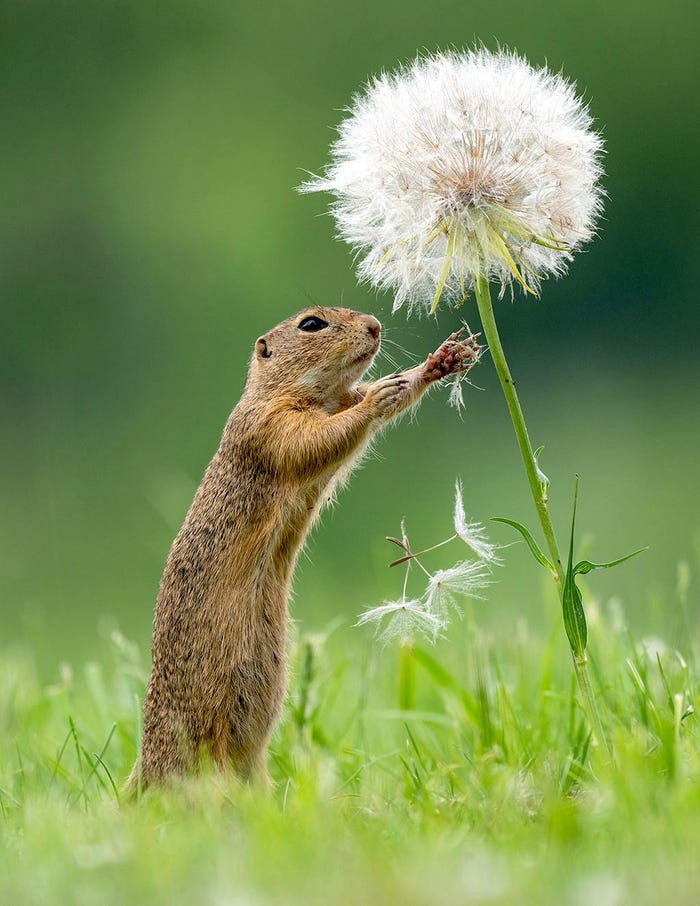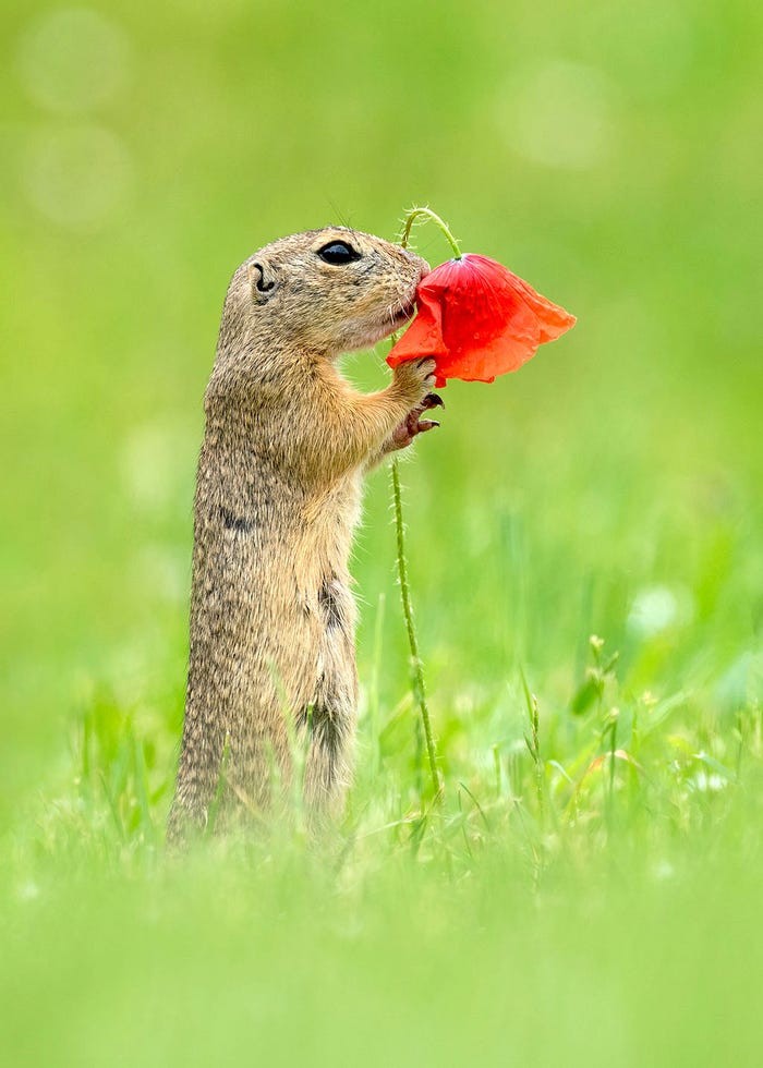 Nhiếp ảnh giaDick van Duijn, 34 tuổi, người Hà Lan đã dành ra 2 giờ đồng hồ để lưu giữ lại hình ảnh một chú sóc nhỏ đang chơi đùa bên một bông hoa ởVienna, nước Áo.