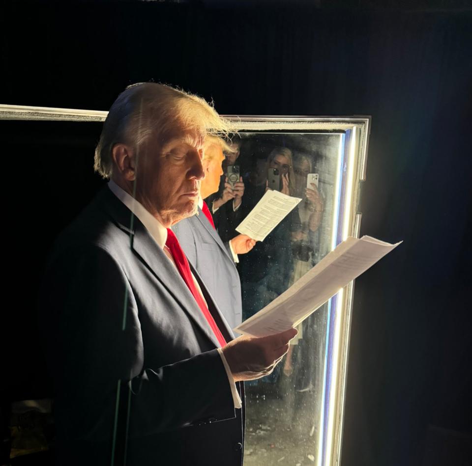 Ông Trump trước khi phát biểu thắng cử tại Palm Beach, Florida. Ảnh do con trai ông đăng trên X.•