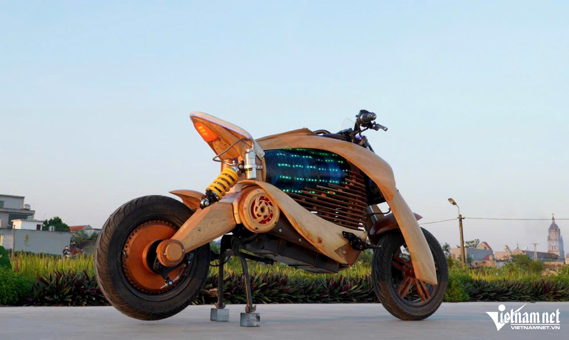 Chiếc mô tô bằng gỗ được anh Đạo chế tạo