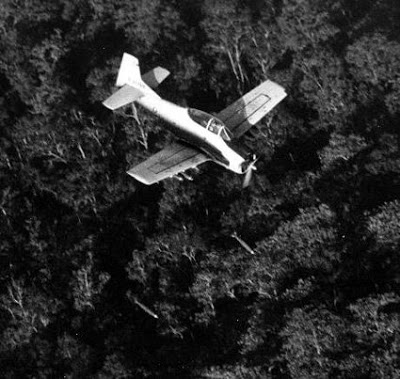 Hết khu trục A1-E rồi phản lực F4-C thay phiên nhau quần thảo phía Bắc con suối, cách chỗ chúng tôi khoảng 50-60 thước. Tiếng bom, tiếng đạn và tiếng la vang từng chập. Tiếng bom đạn vừa ngừng là bọn chúng lại chạy về hướng Đông của đường mòn. Chưa bao giờ tôi thấy khu trục yểm trợ ngoạn mục như vậy. Nhiều tràng đại liên cài dọc theo con suối chỉ cách chúng tôi không qúa 50 thước. Tôi nghĩ chỉ cần một viên đạn ”bụi đời” bỏ đi bậy bạ là toán chúng tôi có người bỏ mạng rồi. Phi cơ đánh từ Đông sang Tây phía trước mặt chúng tôi. Hướng Bắc không nhìn thấy địch nhưng về hướng Tây trên một ngọn đồi thấp có nhiều tảng đá to, tôi thấy địch đang tập trung và ẩn nấp quanh mấy hòn đá lớn lố nhố.