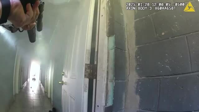 Video từ camera gắn trên người cho thấy khoảnh khắc một thành viên của đội SWAT quận Martin đã bắn một phát súng không gây tổn thương nghi phạm, nhưng có độ chính xác đáng kinh ngạc đủ để tước dao khỏi tay kẻ này.