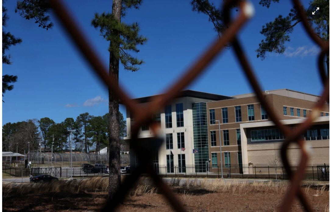 Trụ sở Sở Cải huấn Nam Carolina (SCDC) xuất hiện sau hàng rào thép gai, nơi tử tù Brad Sigmon bị xử bắn tại Nhà tù Broad River, Columbia, Nam Carolina (Mỹ). Ảnh: Reuters.