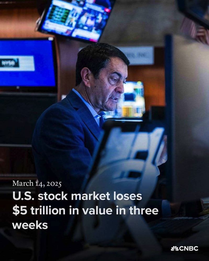 Kết quả là thị trường đã mất khoảng 5,000 tỉ đô la chỉ trong ba tuần qua do những xáo trộn, bất ổn mà Trump và Elon gây ra như trên.