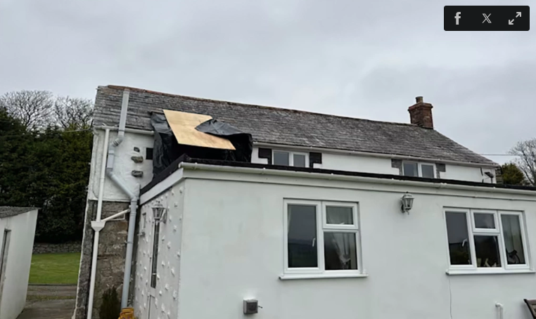 Phần lớn thiết bị mắc vào cây, nhưng một phần đã rơi trúng ngôi nhà tại làng Tregaswith gần sân bay Newquay Cornwall, làm vỡ mái lát đá và hư hại một phần công trình. Chủ nhà Sue Rundle cùng con trai đã phát hiện vật thể dường như làm bằng chì trong đống đổ nát.