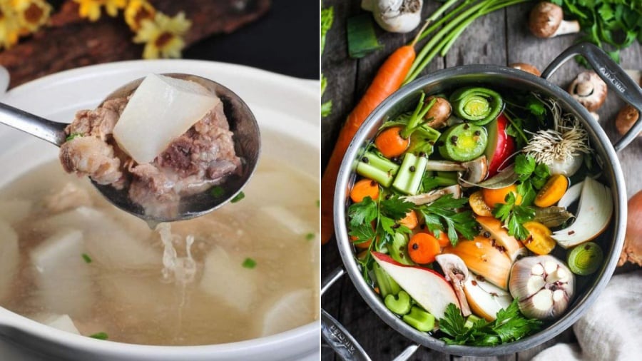 Nấu nước dùng từ xương sẽ mất khá nhiều thời gian. Trong khi đó, nếu nấu từ các loại rau củ, bạn sẽ cần lượng thời gian ngắn hơn rất nhiều.