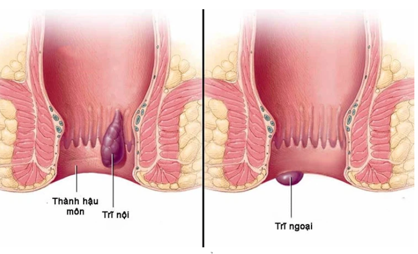 Trĩ nội: Búi trĩ ẩn bên trong ống hậu môn, thường gây chảy máu nhưng ít đau.