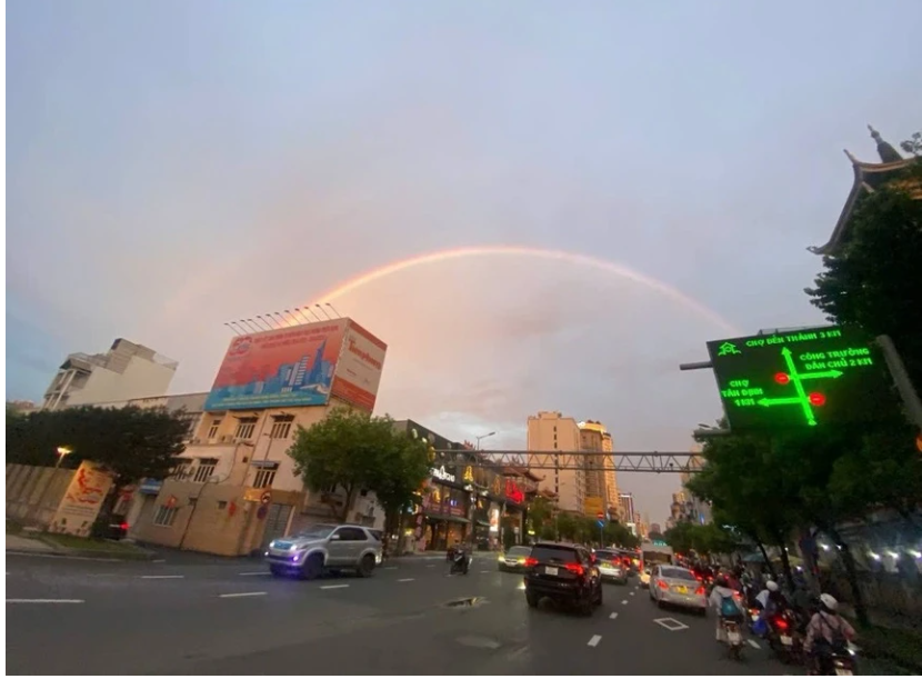 Hiện tượng cầu vồng đôi xuất hiện vào khoảnh khắc hoàng hôn ở TP.HCM.