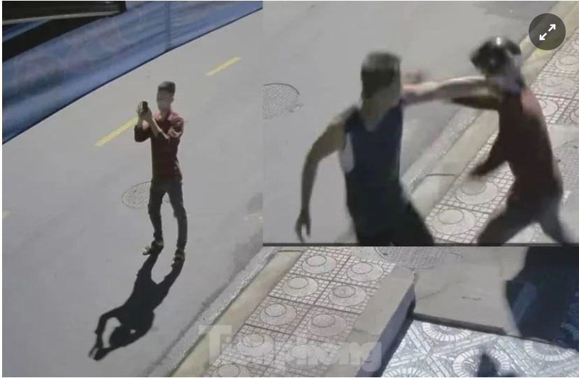 Để bạn biết vị trí đang đứng chờ, thanh niên đã dùng điện thoại chụp ảnh đường. Sau đó một người đàn ông đã chạy tới đấm, đá túi bụi vì cho rằng anh này chụp ảnh mình.