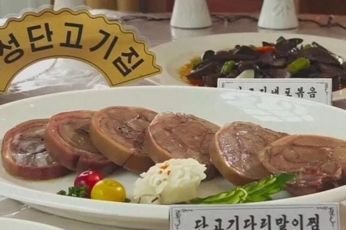 Món thịt chó được giới thiệu tại cuộc thi nấu ăn ở Chongjin, tỉnh North Hamgyong, năm 2022. Ảnh: KCTV.