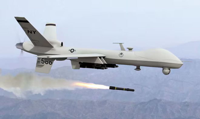 UAV Reaper được trang bị tên lửa AGM-114 Hellfire và bom dẫn đường chính xác. Vũ khí này từng được sử dụng trong cuộc không kích của Mỹ nhằm hạ sát tướng Iran Qassem Soleimani vào năm 2020.