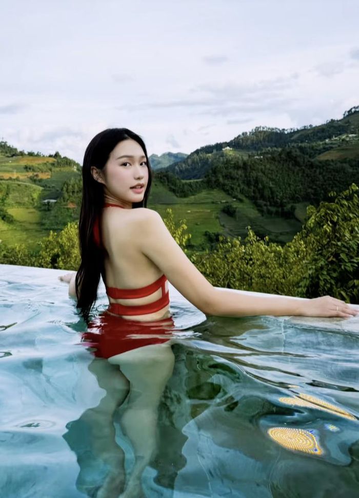Vóc dáng sau sinh của người đẹp sinh năm 2001 được khen ngợi hết lời với vòng eo thon, đường cong chữ S và thần thái quyến rũ. Sau hơn một năm làm mẹ, nàng WAGs vẫn duy trì được hình thể đáng ngưỡng mộ với vòng ba căng đầy, làn da mịn màng và khí chất cuốn hút. Trong khoảnh khắc đứng giữa bể bơi, thần thái của cô vừa e ấp vừa sắc sảo, tạo nên bức ảnh có sức "sát thương" mạnh với người xem.