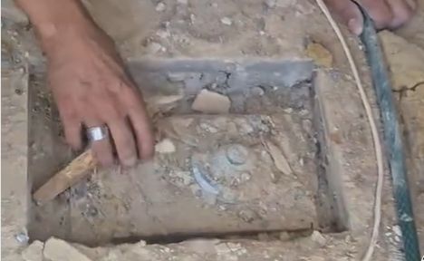 Khám phá diễn ra khi nhóm thợ đang sửa đường ống sưởi dưới sàn. Trong đoạn video được Josh chia sẻ trên TikTok, một người thợ bất ngờ lật lớp gạch và phát hiện ra một vật thể tròn lạ. Sau đó được xác nhận là mặt số của một chiếc két sắt cổ.