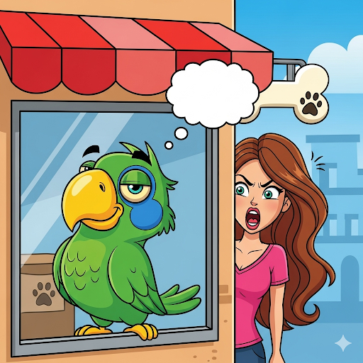 Mary đứng hình. Chủ tiệm đứng sau quầy… giả vờ lau lồng chim. Con vẹt thì… rung lông cánh như đang vỗ tay.