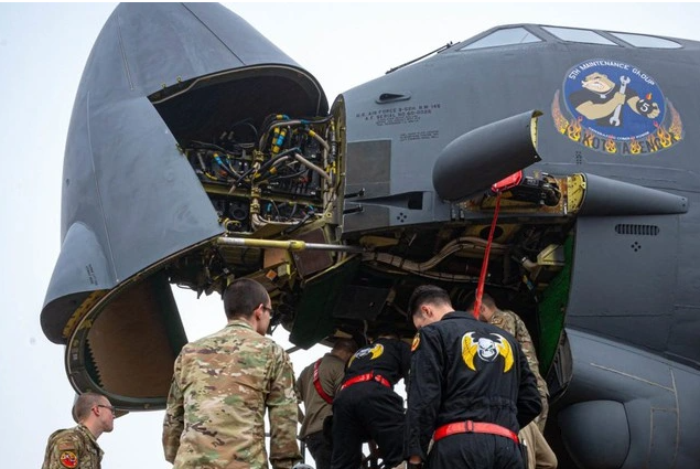 Đội Bảo trì Máy bay số 23 thực hiện việc đổi ăng ten radar cho một chiếc B-52H Stratofortress tại căn cứ không quân Morón (Tây Ban Nha) hôm 10.3.2023