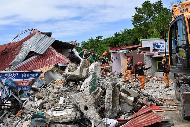 Lực lượng cứu hộ tìm kiếm người mất tích sau động đất ở TP.Bogo thuộc tỉnh Cebu (Philippines) ngày 1.10