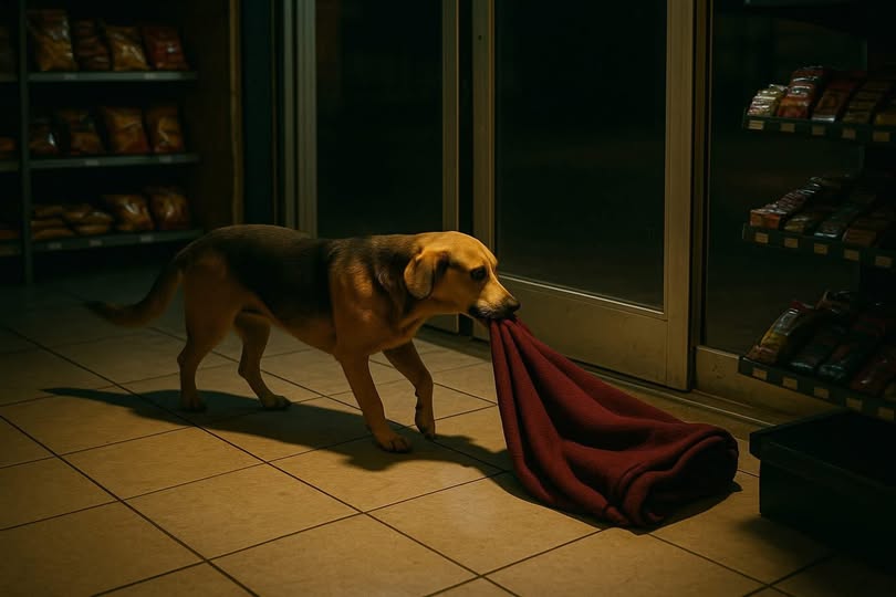 Một chú chó hoang — không lớn cũng chẳng nhỏ, tai cụp, ánh mắt lanh lợi — dùng mũi đẩy cửa tự động cho đến khi chui vào được.