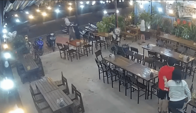 Lúc này trong quán khá vắng khách, phía trước có 3 người. Ôtô tông trực diện hai người, trong đó một nạn nhân bị húc văng xa. Sau đó xe lùi lại chừng 4 m, người đàn ông đội mũ, mặc quần cộc, áo thun bước xuống, tiến về phía nạn nhân.