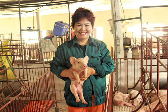 Đến nay, trên diện tích trang trại rộng 2,2ha, bà đã xây dựng khu chuồng nuôi lợn sinh sản với 3 dãy và 1 khu chuồng nuôi lợn thịt, 1 khu chuồng nuôi gà thịt, vịt và đào ao nuôi cá. Dãy chuồng lợn rộng 5.000m2 được xây dựng đảm bảo sạch, thoáng mát, duy trì nuôi trung bình 270 con lợn/lứa, mỗi năm 2,5 lứa; nuôi 700 lợn thịt/lứa, mỗi năm 2 lứa. Dãy chuồng vịt rộng khoảng 500m2, nuôi 500 vịt/lứa; dãy chuồng gà rộng khoảng 1.200m2, nuôi 1 vạn gà/lứa, 1 năm nuôi 2-3 lứa; ao cá rộng 1.600m2…