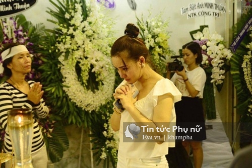 Vy Oanh khóc nấc khi tới viếng đàn anh.
