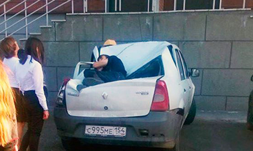 Alexander Shadrin, 16 tuổi, ở Novosibirsk, Siberia, đã leo qua lan can ở ban công nhà mình để chứng minh sự dũng cảm với một người bạn gái. Tuy nhiên, sau một lúc, cậu tuột tay và rơi từ độ cao 70 mét xuống nóc của một chiếc taxi đỗ bên dưới.