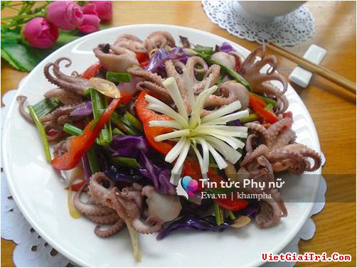 Bạch tuộc xào thập cẩm ăn với cơm rất ngon.