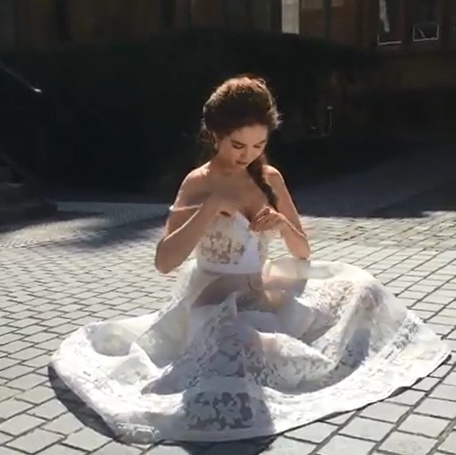 Diện váy trắng xuyên thấu, Ngọc Trinh cùng ê kíp tranh thủ thời gian thực hiện bộ hình tại Úc trong thời gian tham dự Vietnam Film Festival 2016.