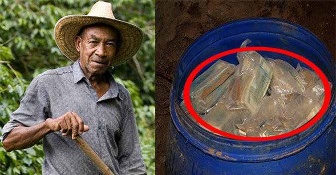 Một ông lão người Colombia đi đào mương trong vườn đã bất ngờ phát hiện ra 10 thùng bưu kiện kỳ lạ. Tò mò mở ra xem thì ông đã choáng váng khi trong đó là số tiền lên tới 600 triệu USD (tương đương với 13 nghìn tỷ VNĐ) tiền mặt. Thấy lo lắng khi nhặt được số tiền lớn như vậy, ông lão này liền báo ngay cho cảnh sát và tìm cách xử lý những thùng tiền thay vì giữ làm của riêng.